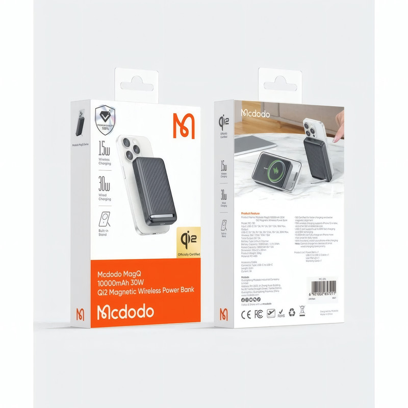 ما در تکنیک تل به دنبال خلق تجربهای متفاوت و حرفهای برای مشتریان خود هستیم. پاوربانک وایرلس مک دودو مدل MC-781 با ظرفیت 10000 میلیآمپر ساعت و توان 30 وات، یک محصول چندمنظوره و کاربردی برای کاربران مدرن است. این پاوربانک با طراحی مگنتی و استند داخلی، تجربهای راحت و کارآمد را در شارژ دستگاههای شما فراهم میکند. این پاوربانک مجهز به دو خروجی شامل پورت USB-C با توان خروجی حداکثر 30 وات و پد شارژ وایرلس مگنتی با توان حداکثر 15 وات است. ویژگی شارژ سریع آن، امکان شارژ دستگاههایی مانند آیفون را در مدتزمان کوتاهی فراهم میکند؛ بهعنوان مثال، آیفون شما تنها در 30 دقیقه تا 50 درصد شارژ میشود. طراحی باریک و وزن سبک 226 گرمی این محصول، حمل آسان و استفاده در هر مکان را ممکن میسازد. بدنه این پاوربانک از پلیکربنات و پلاستیک ABS ساخته شده که علاوه بر دوام بالا، ظاهری مدرن و جذاب به آن میبخشد. چراغ نشانگرهای LED نیز میزان شارژ باقیمانده را بهصورت دقیق نمایش میدهند. علاوه بر این، مک دودو MC-781 با رعایت استانداردهای ایمنی، از دستگاههای شما در برابر جریان و ولتاژ اضافی، دمای بالا، شارژ بیش از حد و اتصال کوتاه محافظت میکند. یکی از ویژگیهای منحصربهفرد این پاوربانک، وجود استند داخلی است که امکان قرار دادن گوشی در حالت افقی یا عمودی را فراهم کرده و تجربهای کاربردی برای تماشای فیلم یا انجام کارهای روزمره ارائه میدهد. توجه داشته باشید که محصولات اورجینال مک دودو را تنها از تکنیک تل تهیه کنید. قیمتهای پایین برخی فروشندگان نشاندهنده عرضه محصولات کپی و تقلبی است. با خرید از تکنیک تل، اصالت، کیفیت و عملکرد بینقص را برای خود تضمین کنید. تکنیک تل، انتخاب هوشمندانه برای تجربه فناوریهای اصیل.
