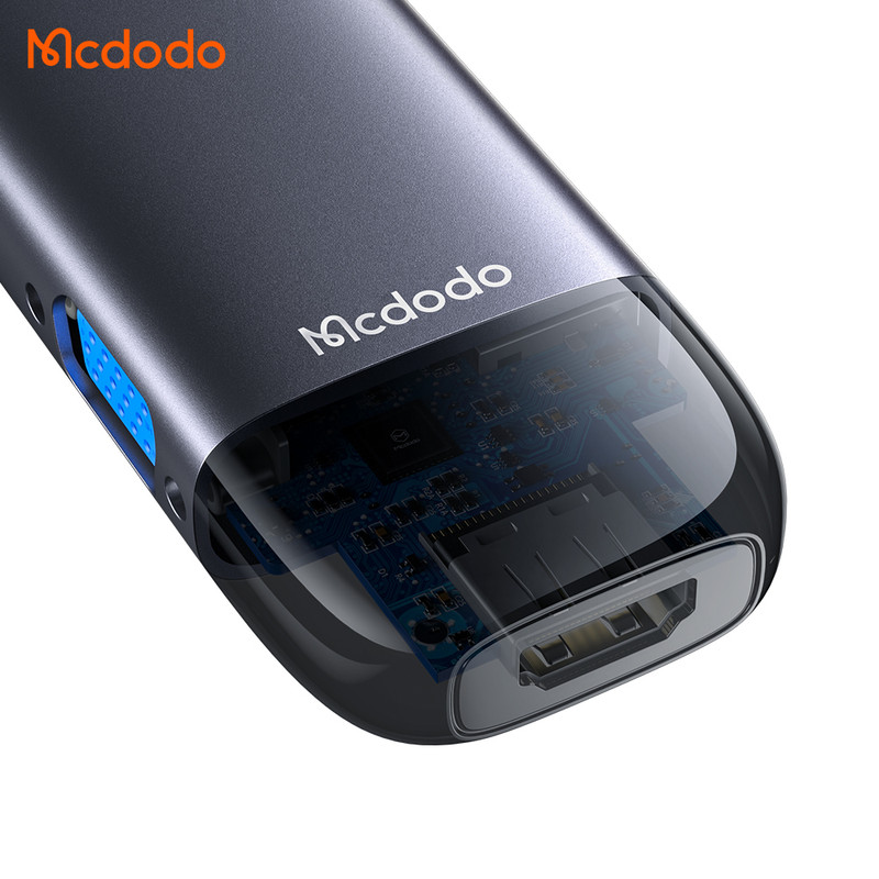 هاب 10 پورت USB-C مک دودو مدل HU-7420 چند کاره مک دودو دارای کانکتور USB-C بوده و قابلیت شارژ گوشی، انتقال داده و اتصال کارت SD را دارا می باشد.ابعاد هاب چند کاره Mcdodo HU-7420; برابر با 1.85×4.2×30 سانتی متر بوده و 90 گرم می باشد. بدنه آن از آلیاژ آلومینیوم و طول کابل آن 15 سانتی متر است.در اطراف بدنه این هاب 10 پورت متفاوت قرار گرفته که امکان شارژ با USB (4PORT) ، اتصال LAN RJ45 (10,100,1000M Gigabit)، اتصال HDMI 4K (3840x2160)و کارت حافظهSD/MicroSD و VGA را به کاربر می دهد.به کمک Type-c کاربر می تواند لپ تاپ یا هر وسیله دیگری را شارژ کند. حداکثر توان قابل انتقال به وسیله پورت PD برابر با 100 وات است.پورت تایپ سی این هاب فقط قابلیت شارژ دارد و برای انتقال اطلاعات نمی باشد.هاب مک دودو می تواند به درگاه تایپ سی لپ تاپ ها، تبلت ها و همینطور گوشی ها متصل شود و از سیستم های ویندور، Mac OS ، iPad OS و اندروید پشتیبانی می کند.