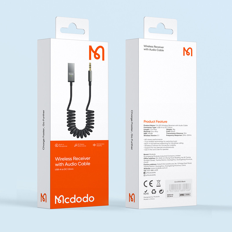 اگر از نبود گزینه بلوتوث روی ضبط ماشین یا اسپیکر خانه خود ناراحت هستید و نگران هستید که یک ضبط بلوتوثدار جدید چقدر برایتان هزینه برخواهد داشت و دوست دارید، آهنگهای روی گوشی خود را با کیفیت بالا روی ضبط خودرو یا اسپیکرتان پخش کنید، ما به شما «گیرنده بیسیمAUX مدل CA-8700 مکدودو» را پیشنهاد میدهیم. میتوانید با این گیرنده و با کاربری بسیار ساده، اسپیکر، ضبط خودرو و یا هر دستگاه پخش دیگری که ورودی AUX دارد را به یک پخش بیسیم تبدیل کرده و بهراحتی موسیقیهای مورد علاقه خود را از طریق گوشی همراهتان، روی آنها پخش کنید. کوچکی و سبکی گیرنده CA-8700، این امکان را به شما میدهد که به راحتی همهجا آنرا بههمراه داشته باشید. چیپ با کیفیت بالا و مصرف انرژی بسیار پایین، صدایی با کیفیت و پایدار را تا فاصله 5 متر برایتان به ارمغان میآورد. برق آن از طریق پورت USB روی دستگاه تامین میشود. میکروفن داخلی آن، امکان تماس هندزفری HD را در هنگام رانندگی یا کار، برایتان فراهم میکند. با کانکتور آبکاری شده با طلا دیگر نگران اکسیداسیون و افت کیفیت صدا نخواهید بود. کابل تلفنی مانند آن که در حالت طبیعی 45 سانتیمتر بوده تا 170 سانتیمتر قابلیت کشسانی دارد. همچنین این کابل از مواد TPE ساخته شده که سازگار با محیط زیست میباشد.برق این گیرنده بلوتوث از usb ضبط ،شارژر فندکی و دیواری یا پاوربانک باید تامین شود.