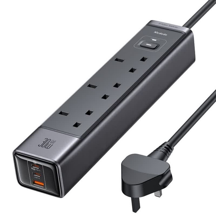 نوار برق با 6 خروجی شامل 2 پورت USB-C، 1 پورت USB-A و 3 خروجی AC ایمنی الکتریکی از جمله با حفاظت از نوسانات پورت USB-C از شارژ سریع حداکثر 30 واتی برای لپتاپ، تلفن و سایر دستگاهها پشتیبانی میکند فناوری شارژ سریع گالیوم نیترید (GaN) پیشرو در صنعت