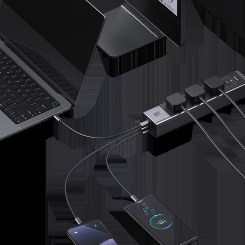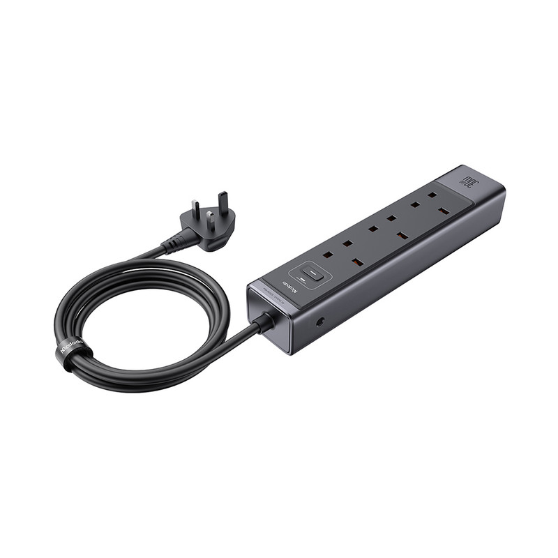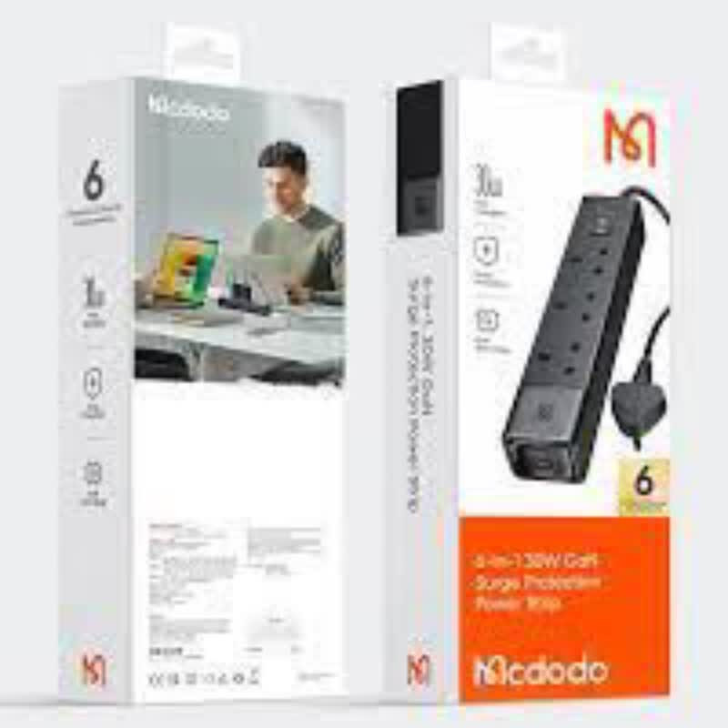 نوار برق با 6 خروجی شامل 2 پورت USB-C، 1 پورت USB-A و 3 خروجی AC ایمنی الکتریکی از جمله با حفاظت از نوسانات پورت USB-C از شارژ سریع حداکثر 30 واتی برای لپتاپ، تلفن و سایر دستگاهها پشتیبانی میکند فناوری شارژ سریع گالیوم نیترید (GaN) پیشرو در صنعت