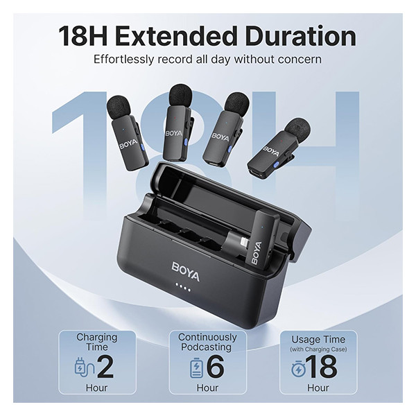 میکروفون بیسیم BOYA BY-V4D یکی از محصولات پیشرفته در حوزه تجهیزات صوتی است که به طور خاص برای افرادی طراحی شده است که به کیفیت صدای بالا و قابلیتهای حرفهای نیاز دارند. این میکروفون برای تولید محتوا، ضبط ویدئو، پادکست، مصاحبه و برنامههای زنده ایدهآل است.با طراحی بسیار کوچک و سبک خود، یکی از بهترین انتخابها برای کاربرانی است که به تجهیزات جمعوجور نیاز دارند. این میکروفون بهگونهای طراحی شده است که به راحتی در کیف یا جیب جای میگیرد و حمل آن برای کاربران، خصوصاً تولیدکنندگان محتوا در سفر یا فضاهای خارجی، آسان است. علاوه بر این، ظاهر شیک و مدرن آن نیز به حرفهای بودن تجهیزات شما میافزاید.یکی از برجستهترین ویژگیهای این میکروفون، پشتیبانی از ضبط همزمان برای چهار نفر است. این مجموعه شامل چهار فرستنده و یک گیرنده است که امکان ضبط صدای هر فرد را به صورت جداگانه فراهم میکند. این ویژگی برای مصاحبههای گروهی، برنامههای زنده یا ضبط ویدئوهایی که در آن چندین نفر صحبت میکنند، بسیار کارآمد است.این میکروفون بیسیم دارای محدوده عملیاتی تا ۲۰۰ متر در فضای باز است. این قابلیت به کاربران اجازه میدهد تا حتی در فواصل طولانی نیز صدای باکیفیت و پایدار ضبط کنند. برای مثال، در برنامههای زنده یا ضبط ویدئوهای فضای باز، این ویژگی یکی از مزایای کلیدی محسوب میشود.ا بهرهگیری از فناوریهای پیشرفته، صدایی شفاف، طبیعی و حرفهای ارائه میدهد. این محصول با حذف نویز محیطی، تضمین میکند که صداهای اضافی محیط در ضبطها دخالت نکنند و نتیجهای بینقص حاصل شود. این ویژگی برای ضبط در محیطهای پر سر و صدا مانند خیابان یا سالنهای شلوغ بسیار مناسب است.کی دیگر از ویژگیهای برجسته BOYA BY-V4D، باتری داخلی آن است که عمر طولانی و عملکرد قابل اطمینانی را ارائه میدهد. این باتری با قابلیت شارژ سریع، امکان استفاده مداوم از میکروفون را برای ساعتها فراهم میکند. این ویژگی برای کسانی که به ضبطهای طولانیمدت نیاز دارند یا در برنامههای زنده فعالیت میکنند، بسیار مهم است.