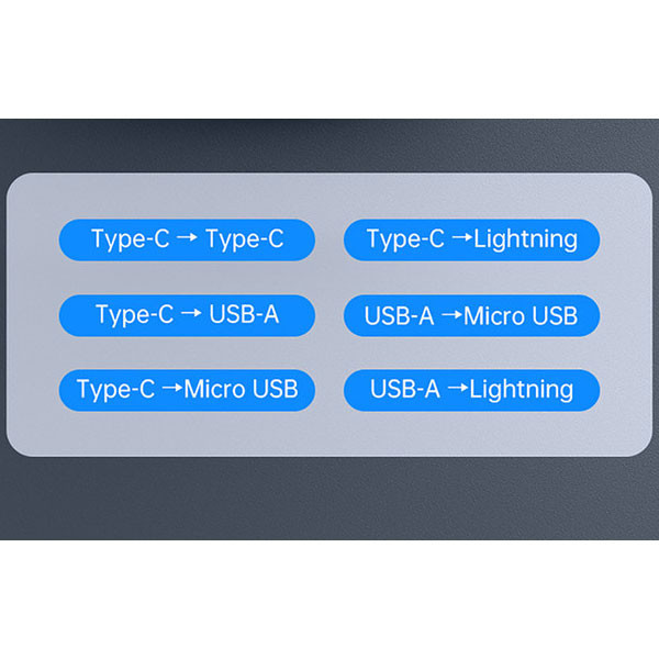 امروزه گوشی های موبایل، تبلت ها و لپ تاپ ها دارای یکی از سه پورت شارژ لایتنینگ ، میکرو یو اس بی و تایپ سی هستند که شما برای شارژ هر کدام از این دستگاه ها که دارای پورت مخصوص به خود می باشد، باید کابل مخصوص آن را نیز با خود داشته باشید. کمپانی Mcdodo با ساخت پک کابل چند منظوره Mcdodo WF-1720 باعث شده تا شما بتوانید با به همراه داشتن این باکس امکان شارژ هر سه نوع درگاه برای شما وجود داشته باشد. این کابل دارای کانکتور های Lightning ، Type-C و Micro USB بوده و به شما این امکان را می دهد تا هر نوع گوشی را شارژ کنید. مشخصات پک کابل چند منظوره Mcdodo WF-1720 باکس چند منظوره WF-1720 دارای 107x31x17.5 میلی متر بوده و وزنی حدود 40 گرم دارد که به راحتی می توانید آن را حمل و نقل کنید. جنس این محصول از پلاستیک محکم ABS و PC بوده که در برابر گرما نیز مقاوم است. داخل باکس چند منظوره WF-1720 یک کابل تایپ سی به تایپ سی با طول 30 سانتی متر، یک تبدیل لایتنینگ (آیفونی)، یک تبدیل USB، یک تبدیل میکرو (Micro USB) و یک سوزن سیم کارت وجود دارد. قابل ذکر است تبدیل ها به کانکتور تایپ سی متصل خواهند شد. شما با استفاده از این تبدیل ها و کابل می توانید تمام دستگاه های موجود را به سیستم و یا آداپتور خود متصل کرده و به انتقال اطلاعات و یا شارژ بپردازید. شما می توانید در 6 حالت از این کابل و تبدیلها استفاده کنید.بعلاوه محفظهای برای قرار دادن سیم کارت و کارت حافظه (TF) در داخل این باکس طراحی شده که باعث میشود شما بتوانید سیم کارت و مموری کارت خود را داخل این باکس گذاشته و با خود حمل کنید. شارژ سریع PD پک کابل چند منظوره Mcdodo WF-1720 دارای قابلیت شارژ سریع PD بوده که می توانید دستگاه های خود را با سرعت بالا شارژ کنید. توان کلی این کابل 60 وات می باشد. قابل ذکر بوده برای استفاده از این توان، نیاز است دستگاه شما این توان را پشتیبانی کند (کابل تایپ سی به تایپ سی). این کابل از فناوری های شارژ سریع SCP، AFC، OPPO، VOOC، VIVO، QC2.0، QC3.0، QC4.0 و PD پشتیبانی می کند و می توانید دستگاههای که از این تکنولوژیها پشتیبانی می کنند، را سریع شارژ کنید.