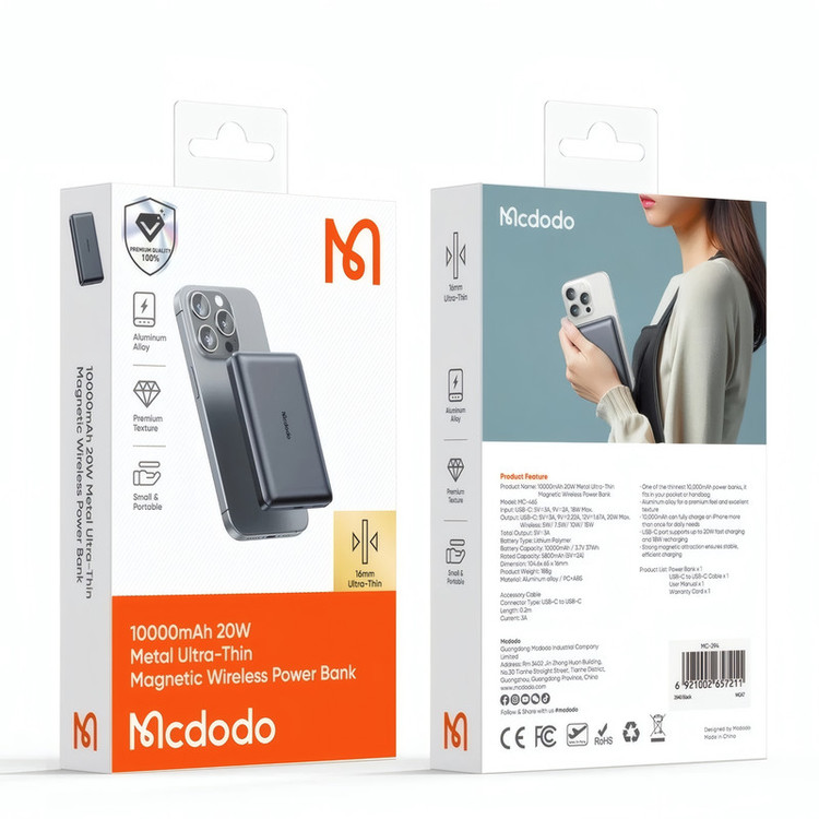 ما در تکنیک تل به دنبال خلق تجربهای متفاوت و حرفهای برای مشتریان خود هستیم. پاوربانک مک دودو مدل MC-465 با ظرفیت 10000 میلیآمپر ساعت و طراحی فوقالعاده نازک و مگنتی، انتخابی ایدهآل برای کاربران حرفهای و علاقهمندان به فناوری است. این پاوربانک با بدنهای از جنس آلیاژ آلومینیوم و ابعادی کوچک، ترکیبی از زیبایی و دوام را ارائه میدهد و بهراحتی در جیب یا کیف شما جای میگیرد. پاوربانک مک دودو MC-465 دارای دو خروجی است: یک پورت USB-C با توان خروجی حداکثر 20 وات و یک پد شارژ وایرلس مگنتی با توان حداکثر 15 وات. این محصول با پشتیبانی از شارژ سریع PD و قابلیت شارژ همزمان چند دستگاه، نیازهای روزمره شما را بهخوبی برآورده میکند. نشانگر LED تعبیهشده بر روی دستگاه، میزان شارژ باقیمانده را نمایش میدهد و استفاده از آن را آسانتر میکند. این پاوربانک علاوه بر سازگاری با آیفون 14 و 15، مناسب برای شارژ انواع گوشیها، هندزفریهای بلوتوثی و سایر دستگاههای مجهز به فناوری شارژ وایرلس است. همچنین با ویژگیهایی مانند حفاظت در برابر اتصال کوتاه، ولتاژ بیش از حد و تخلیه بیش از حد، ایمنی دستگاههای شما را تضمین میکند. توجه داشته باشید که محصولات اورجینال مک دودو را تنها از تکنیک تل تهیه کنید. قیمتهای پایین برخی فروشندگان نشاندهنده عرضه محصولات کپی و تقلبی است. با خرید از تکنیک تل، اصالت، کیفیت و عملکرد بینقص را برای خود تضمین کنید. تکنیک تل، انتخاب هوشمندانه برای تجربه فناوریهای اصیل.