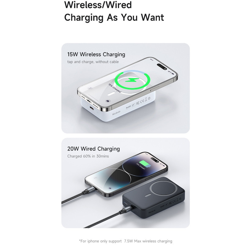 Type-C Input: 5V⎓3A | 9V⎓2 A Type-C Output: 5V⎓3A | 9V⎓2.22A | 12V⎓1.67A Wireless: 5W | 7.5W | 10W | 15W