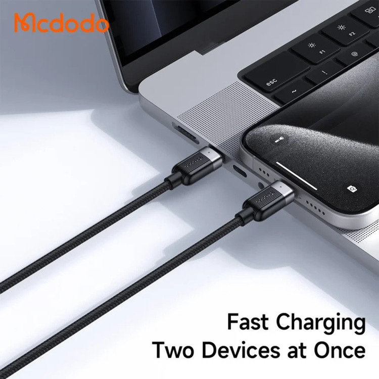 اگر چند دستگاه مجهز به درگاه تایپسی دارید و برای شارژ همزمان آنها مجبورید چند کابل و آداپتور با خودتان حمل کنید، کابل شارژ Mcdodo CA-678 راهحل ساده و کاربردی این مشکل است. این کابل با توان 100 وات و طول 1.5 متر، در یک سمت به کانکتور USB-C متصل میشود و در سمت دیگر دو خروجی تایپسی دارد تا بتوانید تنها با یک آداپتور، پاوربانک یا شارژر فندکی، دو دستگاه را بهصورت همزمان شارژ کنید. بدنه کابل از الیاف نایلونی کنفی بههمبافته ساخته شده که مقاومت بالایی در برابر کشیدگی، پارگی و استفاده مداوم دارد و محل اتصال کابل به سوکتها نیز با طراحی تقویتشده از آسیبدیدگی زودهنگام جلوگیری میکند. روکش و بخشهایی از کانکتورها از آلیاژ آلومینیوم ساخته شدهاند که علاوه بر استحکام بالا، وزن کمی دارند و در برابر زنگزدگی و افت کیفیت مقاوم هستند. روی هر یک از دو خروجی تایپسی، چراغ LED تعبیه شده تا وضعیت شارژ دستگاههای متصل را بهصورت واضح نمایش دهد. این کابل از عبور جریان تا 20 ولت و 5 آمپر پشتیبانی میکند و با توان حداکثری 100 وات، امکان فست شارژ انواع گوشیهای هوشمند، تبلتها، لوازم جانبی و حتی لپتاپهای دارای درگاه تایپسی را فراهم میسازد. وجود چیپ هوشمند داخلی باعث میشود ولتاژ و جریان مناسب هر دستگاه بهطور خودکار تشخیص داده شده و از خطراتی مانند داغ شدن بیش از حد، اتصال کوتاه یا نوسان ولتاژ جلوگیری شود. علاوه بر شارژ، این کابل قابلیت انتقال داده با سرعت 480 مگابیت بر ثانیه را نیز دارد. کابل شارژ Mcdodo CA-678 با طراحی هوشمندانه، کیفیت ساخت بالا و امکان شارژ همزمان دو دستگاه تایپسی، انتخابی ایدهآل برای استفاده روزمره، محیط کار و سفر است و با طیف وسیعی از دستگاهها از جمله گوشیهای اندرویدی، آیفونهای سری 15 به بعد، لپتاپها و گجتهای دیجیتال سازگاری کامل دارد.