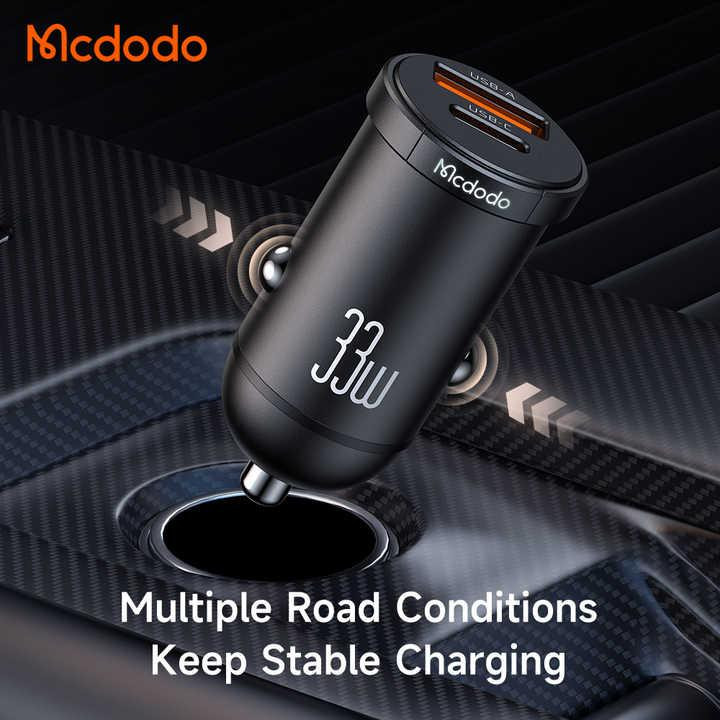 ر مواقع ضروری که درون خودروی خود هستید و نیاز به شارژر گوشی دارید و پاوربانک در دسترس نیست تا بتوانید به شارژ باتری گوشی بپردازید، شارژر فندکی به کمک شما میآید و به راحتی این دغدغده را رفع میکند. فروشگاه اینترنتی جانبی در این زمینه شارژر موبایل داخل ماشین CC-232 از برند مک دودو را به شما پیشنهاد میدهد که طراحی بسیار جذابی دارد؛ این محصول با داشتن یک درگاه USB-C و یک درگاه USB-A امکان شارژ همزمان دو دستگاه را برایتان فراهم کرده است. مینی شارژر فندکی Mcdodo CC-232 به دلیل استفاده از مواد اولیه با کیفیت در ساخت محصول از دوام و کیفیت قابل توجهی برخوردار است. جنس بدنه آن از آلیاژ آلومینیوم بسیار مقاوم در برابر ضربه، خوردگی، اکسید شدن ساخته شده است و علاوه بر این اتلاف سریع گرما در قطعات بهبود مییابد و انرژی گرمایی به سرعت آزاد میشود. همچنین کمپانی مک دودو برای این شارژر فندکی نشانگر LED طراحی کرده که در فضای تاریک داخل خودرو به راحتی بتوانید آن را پیدا کرده و استفاده کنید. یکی از ویژگیهای برجسته این شارژر 2 پورت مک دودو، طراحی کوچک آن است. ابعاد این شارژر 47.5x24.4x24.2 میلیمتر و وزن آن تنها 18 گرم است که آن را به یکی از شارژرهای فندکی کموزن و قابل حمل تبدیل کرده است. این ویژگیها به همراه عملکرد بالا و امنیت فراوان، این شارژر را یک انتخاب عالی برای استفاده در تمامی خودروهای (12V-24V) و سفرهای رانندگی میکند. روی بدنه شارژر مک دودو LED Car Charger CC-232 یک پورت Type-C با حداکثر توان خروجی 33 وات و یک عدد پورت USB-A با حداکثر توان خروجی 18 وات تعبیه شده است که شما میتوانید همزمان دو دستگاه را شارژ کنید. شارژر داخل ماشین مک دودو CC-232 Car Charger مجهز به انواع فناوریهای شارژ سریع PPS, PD, QC, AFC, FCP و غیره است که امکان شارژ در کوتاهترین زمان ممکن را برای شما به ارمغان میآورد. پورت Type-C با حداکثر توان خروجی 33 وات به شما این امکان را میدهد تا در 30 دقیقه، بتوانید گوشیهای موبایل آیفون را تا %60، گوشیهای سامسونگ را تا %62 و گوشیهای شیائومی را تا %65 به سرعت شارژ نمایید.