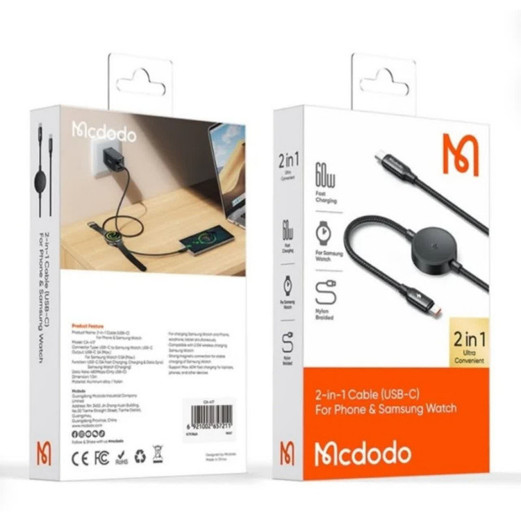 کابل شارژ تایپ سی به تایپ سی و سامسونگ واچ مدل ca-4170 که مناسب برای شارژ موبایل با ورودی تایپ سی وساعت سامسونگ و لپ تاپ میباشد. حداکپر توان خروجی برای شارژ گوشی موبایل و لپ تاپ 65 وات و برای ساعت سامسونگ 2.5 وات میباشد واز سلامت باتری دستگاه شما محافظت می کند و حرارت را در حین استفاده کاهش می دهد. به طور خودکار سری های مختلف ساعت را برای شارژ آسان تا حداکثر 2.5 وات پشتیبانی میکند. طول کابل 1.5 متراست و به اندازه کافی بلند است تا در تنظیمات مختلف مانند محیطهای اداری دسترسی کافی داشته باشد و امکان شارژ راحت در حین کار را فراهم کند. سرعت انتقال داده 480 مگابیت بر ثانیه دارد.