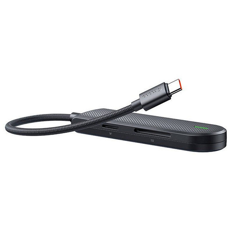 هاب چند کاره مک دودو Mcdodo HU1430 5 in 1 USB C HUB است بسیار پیش می آید که تصمیم می گیریم چندین فلش یا هارد را هم زمان به کامپیوتر یا لپ تاپ وصل کنیم. ولی از آنجایی که درگاه های کامپیوتر محدود است برای این کار به یک هاب چند منظوره نیاز خواهیم داشت. خرید هاب چند منظوره مک دودو Mcdodo HUI43 یکی از راه های حل این مشکل است. از آنجایی که سیستم های کامپیوتری معمولا 3 درگاه USB دارند در صورتی که ما نیاز به درگاه های بیشتری داشته باشیم یا بخواهیم لپ تاپ را به تلویزیون وصل کنیم باید از یک هاب مرکزی کمک بگیریم. هاب چند کاره مک دودو دارای کانکتور USB-C بوده و قابلیت انتقال داده از گوشی، فلش و هارد به کامپیوتر را دارا می باشد. ابعاد هاب شارژ مک دودو Mcdodo HUI43 برابر با 110x30x12.3 سانتی متر بوده و 29 گرم می باشد. بدنه آن از آلیاژ آلومینیوم و طول کابل آن 15 سانتی متر است. همانطور که می بینیم هاب چند کاره مک دودو مدل HUI43 ابعاد بزرگی ندارد و به راحتی قابل حمل و جا به جایی می باشد. در اطراف بدنه این هاب 5 پورت متفاوت به منظور اتصال فلش، هارد، میکرو اس دی و اس دی قرار گرفته است. این هاب مخصوصا مناسب لپ تاپ های مک بوک است که پورت های کمی روی بدنه دارد و برای اتصال دستگاه های دیگر به هاب نیازمند است. کانکتور هاب Mcdodo HUI43 از نوع Type C می باشد. این کانکتور می تواند به لپ تاپ و سیستم هایی که دارای درگاه تایپ سی هستند متصل شده و استفاده شود. کانکتور هاب Mcdodo HUI43 دارای پنج پورت خروجی شامل دو پورت USB 2.0 (با سرعت 480Mbps)، یک پورت USB 3.0 (با سرعت 5Gbps)، یک پورت میکرو اس دی و یک پورت اس دی است. هاب مک دودو Mcdodo HUI43 می تواند به درگاه تایپ سی لپ تاپ ها، تبلت ها و همینطور گوشی ها متصل شود و از سیستم های ویندور، Mac OS ، iPad OS و اندروید پشتیبانی می کند.