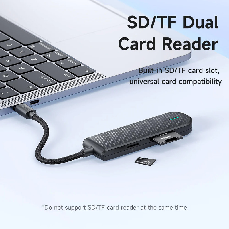 مناسب مک بوک دارای 2 پورت USB 2.0 و یک پورت USB 3.0 دارای درگاه میکرو اس دی و اس دی پشتیبانی از مک، ویندوز، اندروید و آی پد